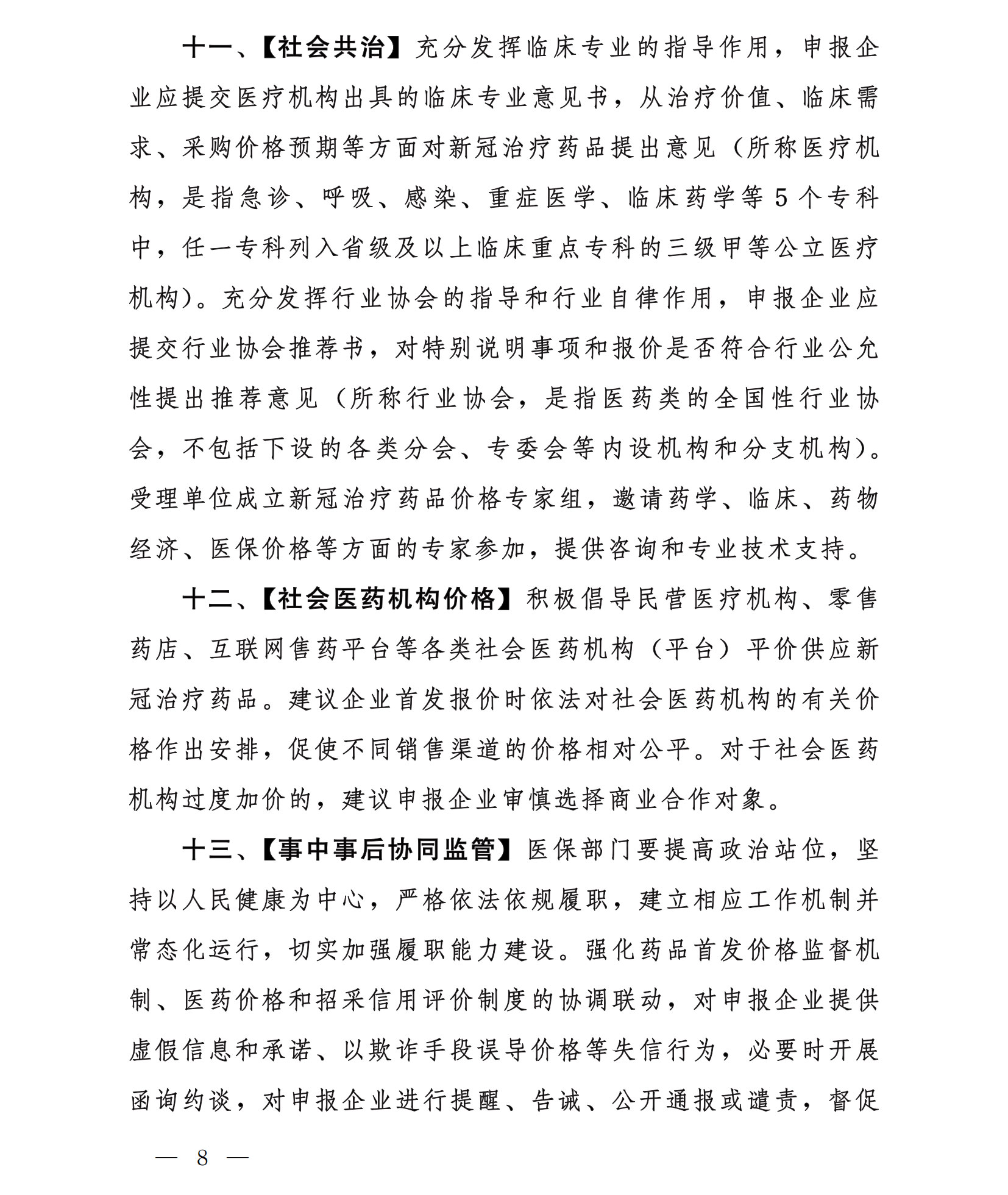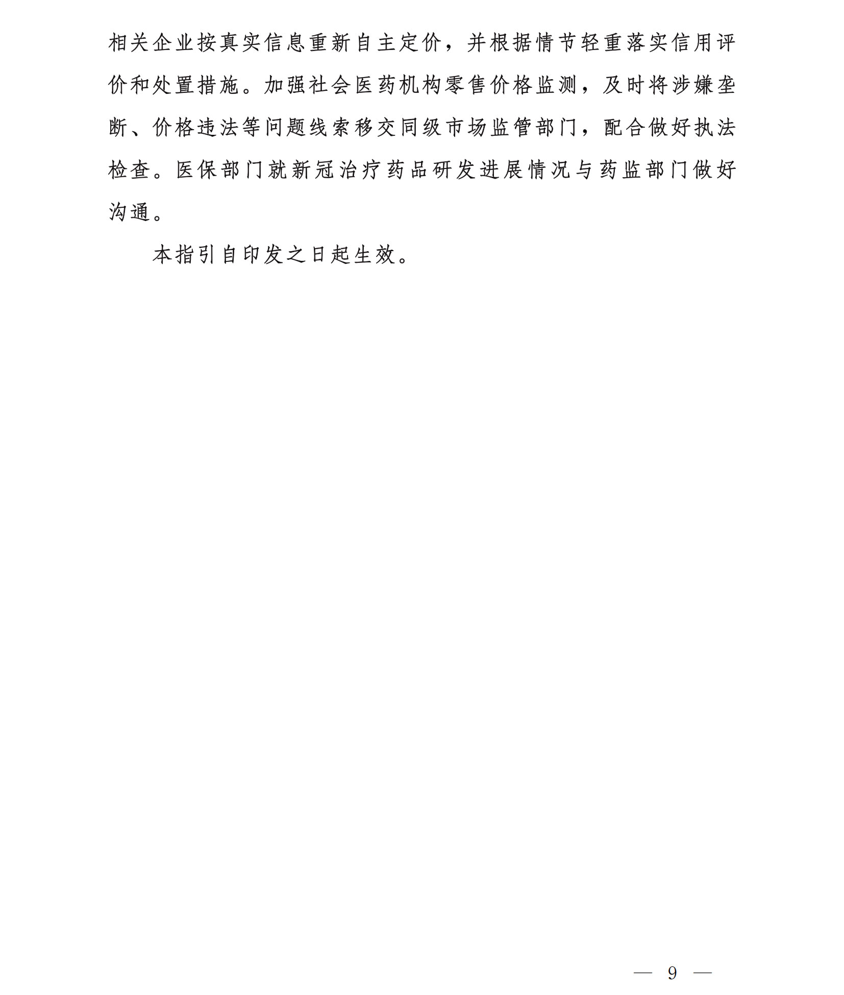 国家医疗保障局办公室关于印发《新冠治疗药品价格形成指引(试行)》的通知